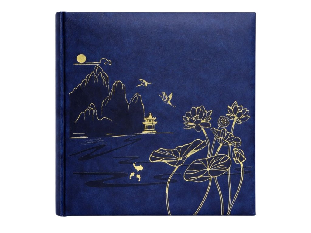 Toto album s všitými kapsami pojme 200 fotografií ve formátu 10x15 cm. Obal z ekokůže zdobí zlatý orientální vzor z kolekce Lotus Pond. Každá stránka má dvě kapsy a prostor pro vaše vlastní poznámky.